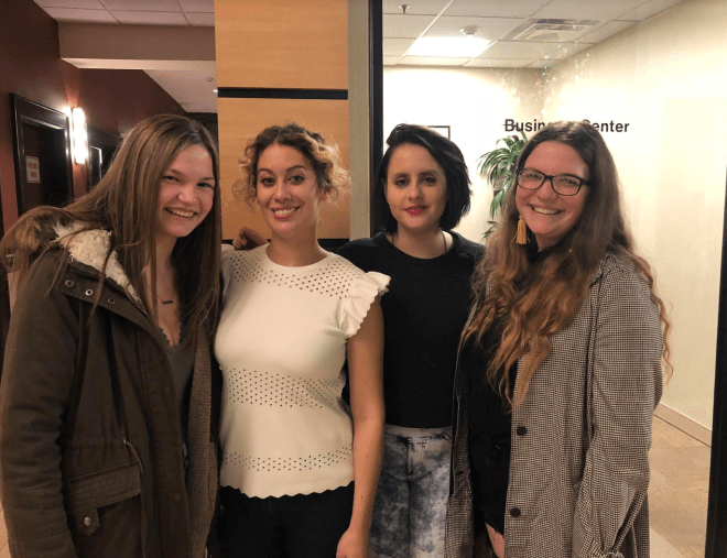 The only call to their podcast existed at the top of the show. As Hutchinson explained, the girls usually read emails from listeners and dispense advice each episode, but because this was a live setting, they invited audience members to get up and have a conversation about their issues face-to-face. Though a general sense of nervousness was initially palpable, some brave individuals did get up to seek guidance from the hosts. Conversations to follow included advice on how to make a Tinder profile more marketable, how to get your high school peers to mind their business, what your friend should do when her boyfriend is too nice, and how to make sure your mom’s cult mentality doesn’t affect your son but also doesn’t ruin the free baby-sitter gig you’ve got going on.